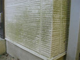 外壁や屋根の表面に、かび・藻が発生した状態。こうなると家全体の美観を損なうだけでなく、塗膜の劣化が進んでしまいます。