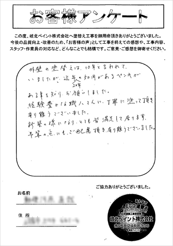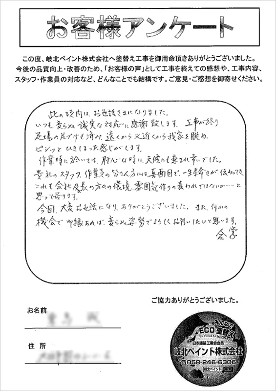 【岐北ペイント株式会社】外壁塗装、屋根塗装、塗替え工事、光触媒塗装、アステックペイント、熱交換塗料、節電塗料・節電塗装、防水工事、ナノフォス、サーファポア、サーファペイント、サーファシールドGの岐阜県岐阜市岐北ペイント。塗り替えのことなら何でもご相談ください
