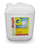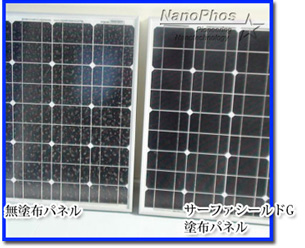 ガラス用自己洗浄・メンテナンス剤 サーファシールドGは最先端のナノテクノロジーの応用によって作られた光触媒製剤 です。サーファシールドG塗布面に光(自然光・人口光)があたることによりナノ粒子が活性し、様々な効果を太陽光パネ ルに与えてくれます。